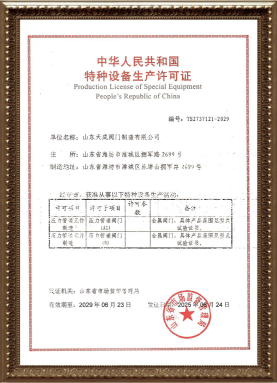 山東天成閥門制造有限公司系山東大型股份制閥門生產企業,2001年成立,公司占地200余畝,公司實收資本伍仟陸佰萬元,資金實力雄厚,是一家專業研制、生產和銷售高中壓閥門的高新技術企業;是中國通用機械工業協會閥門分會會員單位、中原石油勘控局、中原油田經濟往來資格單位、中國建設部推薦產品單位、